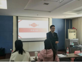 外语学院党委副书记刘涛老师对本次答辩会做出了整体点评。刘涛老师首先高度肯定了各位辅导员老师的辛勤付出和各团支书的优秀答辩,指出此次答辩会是一个展示和交流的机会,低年级团支书展现出活跃的状态,高年级团支书呈现出从容的气质,同时刘涛老师希望各团支部之间应该互为榜样,取长补短,你追我赶。最后对各支部提出要求和希望:各学生干部应同辅导员老师一道,在学风建设、防疫工作等方面积极营造正能量,在需要时积极寻求老师的帮助。