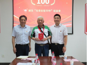 首先,院党委副书记刘涛宣布学院《关于颁发“光荣在党50年”纪念章的决定》,院党委书记黄宏发和院长马萧为荣获“光荣在党50年”纪念章获得者的退休党员代表颁发纪念章。